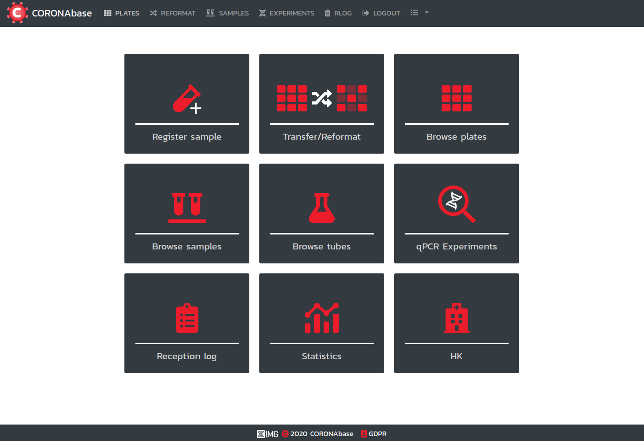User friendly interface. CORONAbase provides cross-platform access via webbrowser, as well as full touch support for mobile devices, which makes it easy to quickly navigate through the application from a wide range of devices. The process of sample registration has been optimized for tablets as a practical alternative for entering data in biosafety areas.